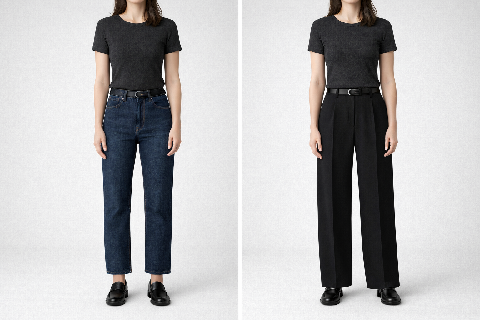 You open your closet and see wide leg trousers, straight leg jeans, a silk tank, a relaxed tee, a structured blazer, sneakers, loafers, maybe a pair of pointed-toe heels. There are options. But when you start combining them, something feels slightly off.