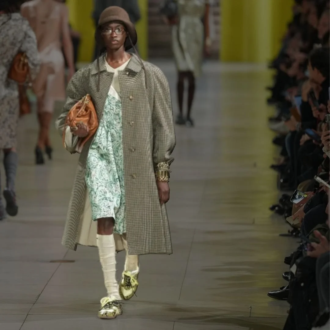 Recent collections from Miu Miu and Coach included colorful retro sneakers styled with everyday pieces, signaling a move away from classic white pairs. Softer yellow tones, in particular, felt easy and wearable rather than overly bold.