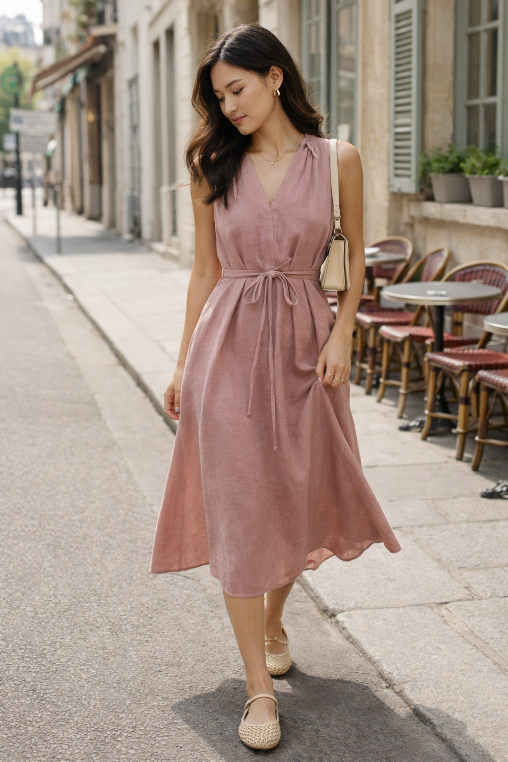 Tip: Pair coordinating linen pieces in soft tones to keep the outfit relaxed but pulled together.