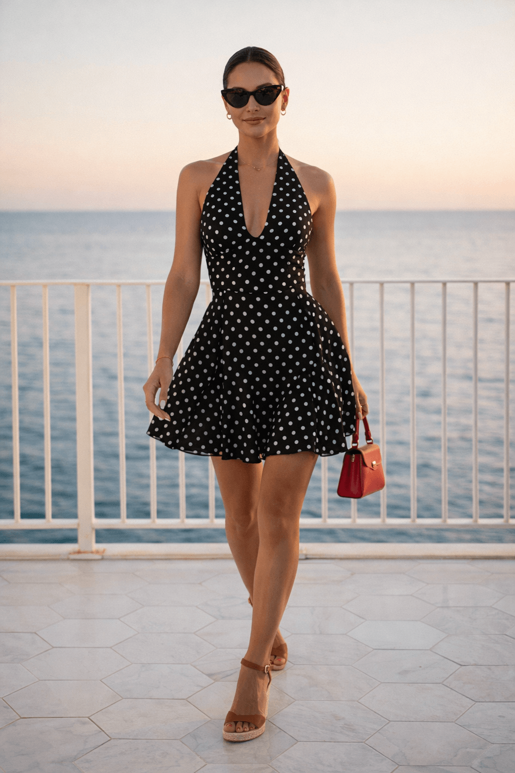 Retro summer outfits lean on vintage-inspired silhouettes, tailored waists, and classic color pairings. Structured shapes and timeless pieces create a polished look with subtle throwback appeal.