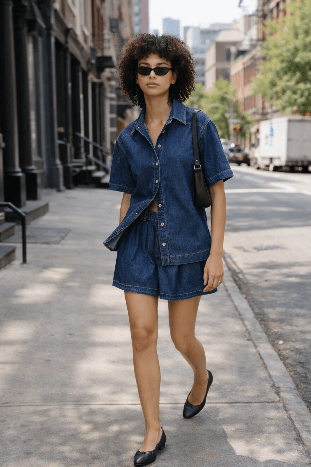 Tip: Keep the styling simple and let the denim define the look. Clean shapes help the outfit feel polished instead of overly casual.
